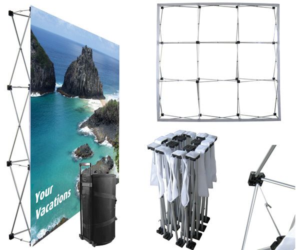 Los PHOTOCALL son muros fácilmente transportables compuestos por una estructura de aluminio plegable con lona impresa a velcro.